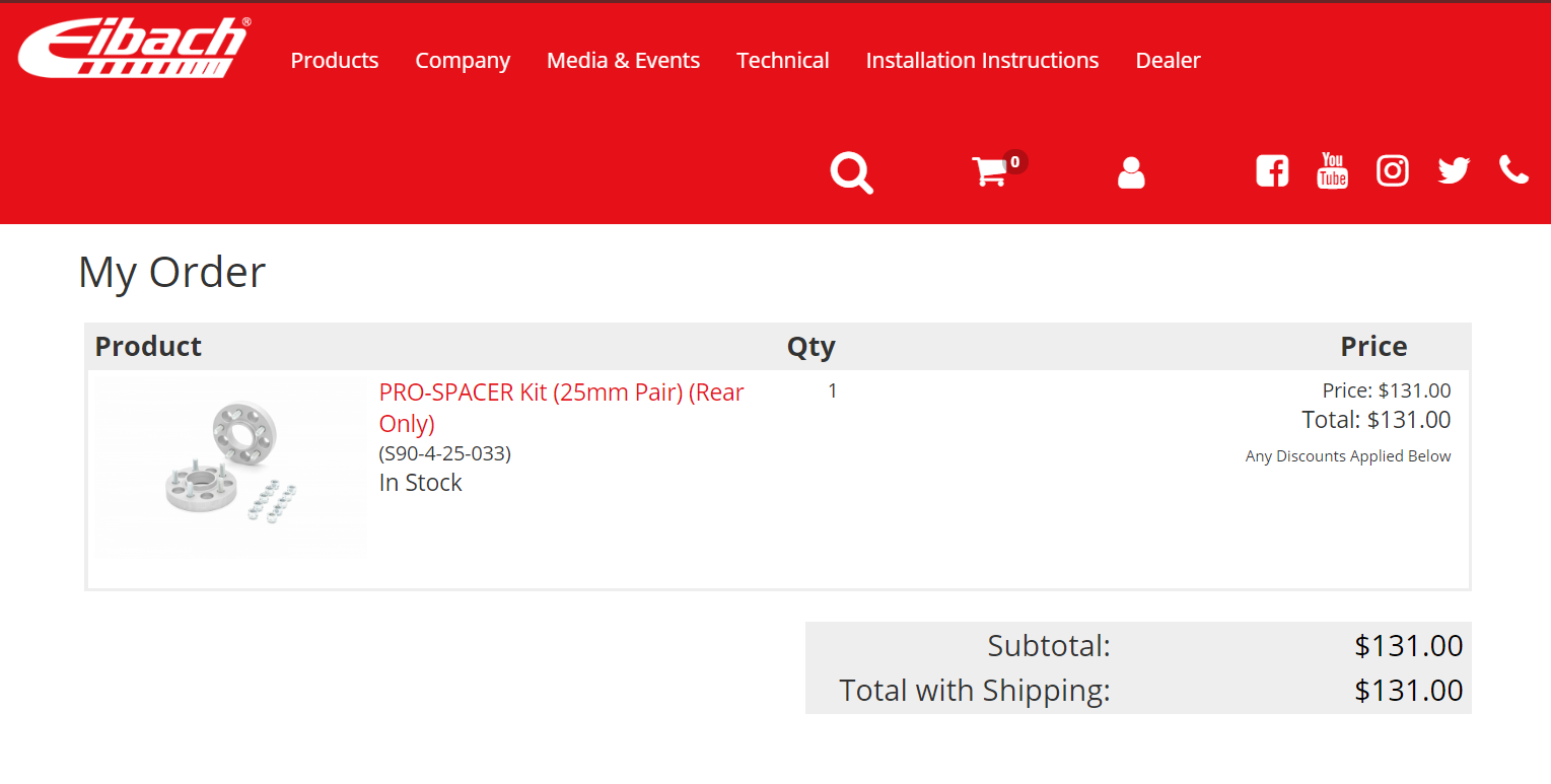 CJPonyParts에서는 Mom's Day 기념으로 10% 할인쿠폰을 제공하고 있었으나 결국 Eibach 사이트에서 정가로 구입했다.