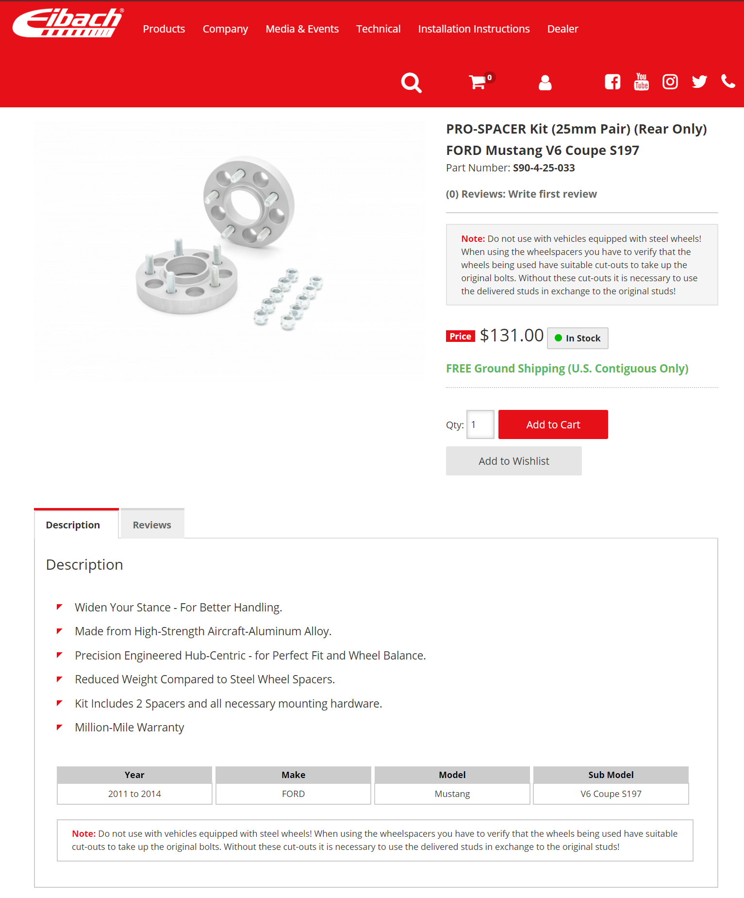 CJPonyParts 및 AmericanMuscle 두 사이트 비교를 함께 했으나, Eibach 사이트보다 설명이 조금 난잡했다.