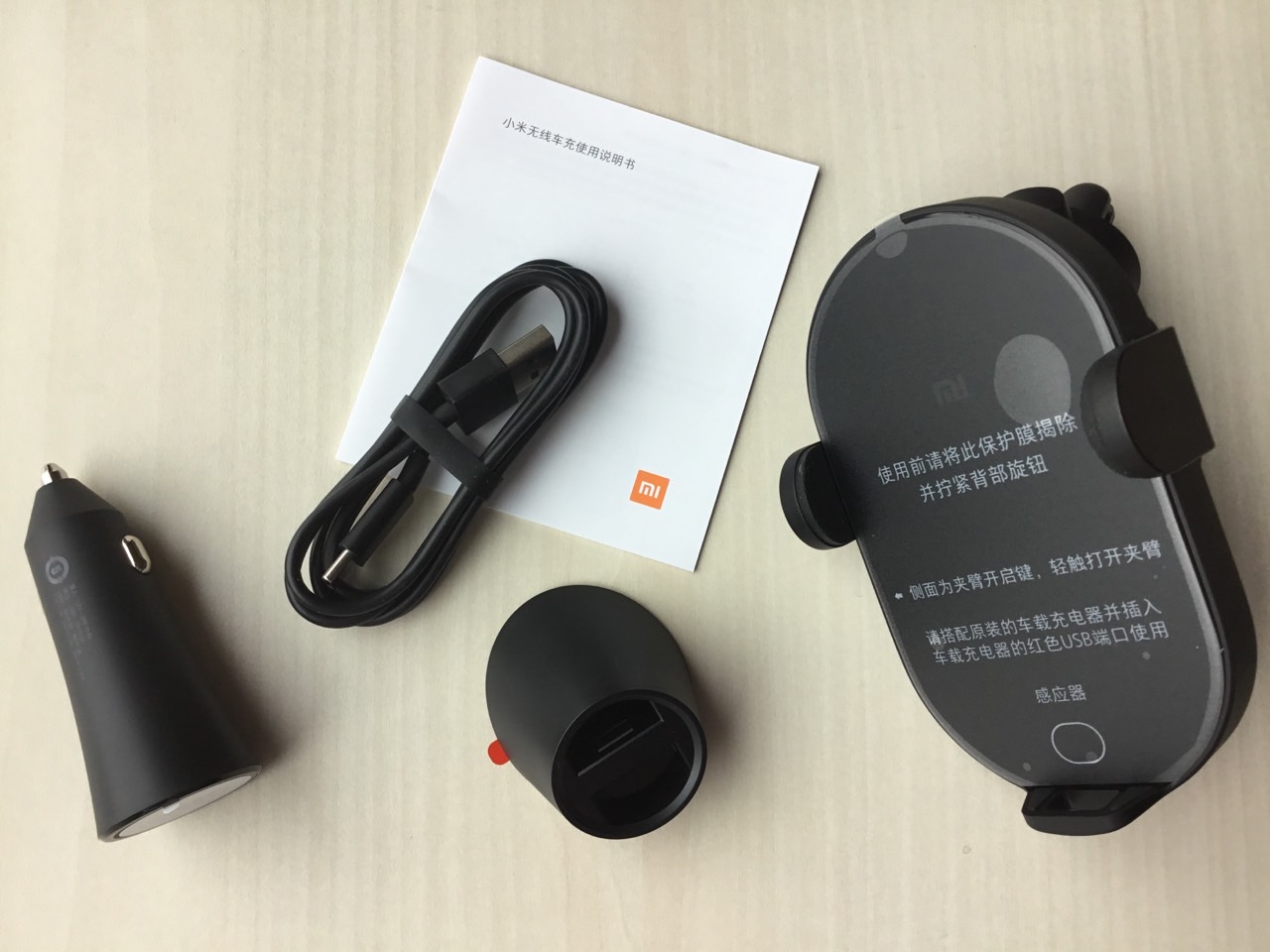 구성품 : 차량용 무선충전기 / C타입 충전 케이블 / 설명서 / 차량용충전기 / 흡착패드