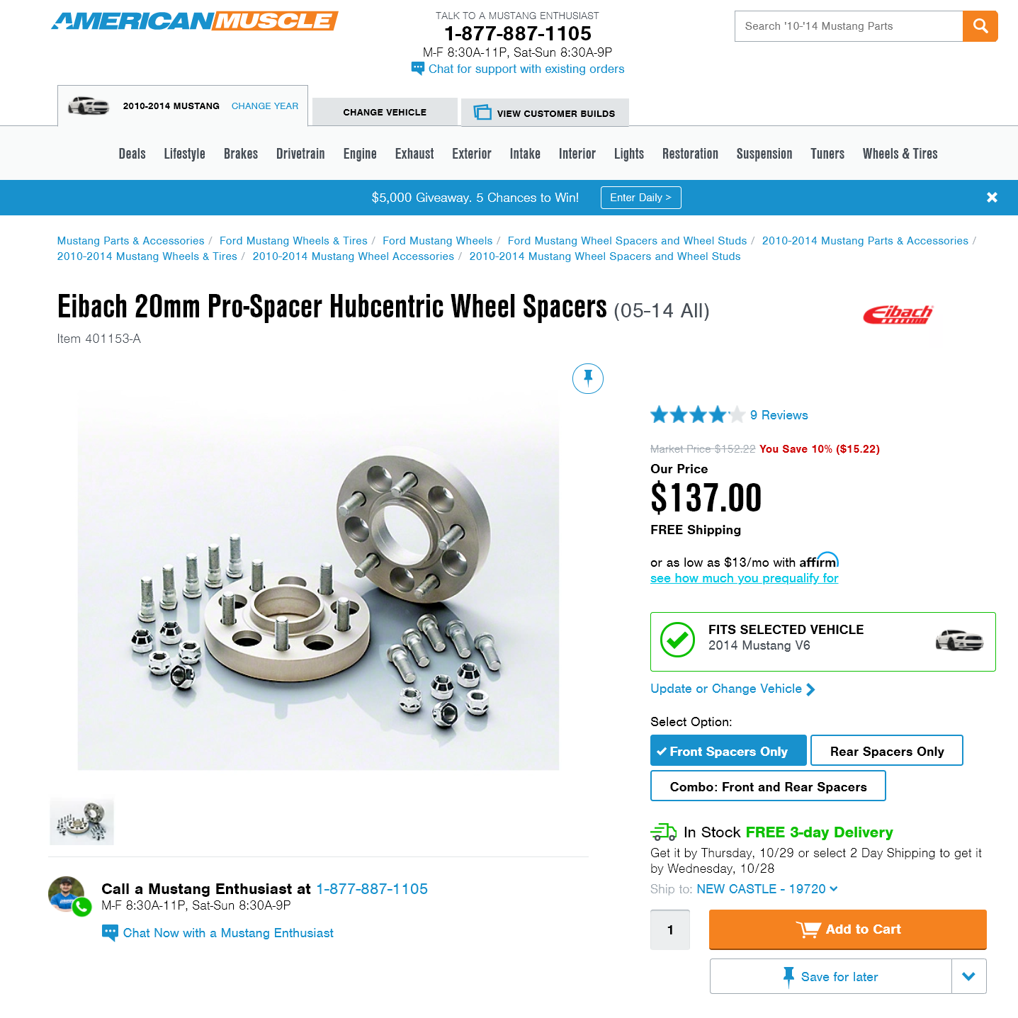 CJ PonyParts 가격이 대략 $30 정도 저렴했으나 Eibach 본사 재고유무를 알 수 없기에 아쉬움을 뒤로하고 Americanmuscle 에서 구입을 진행했다.