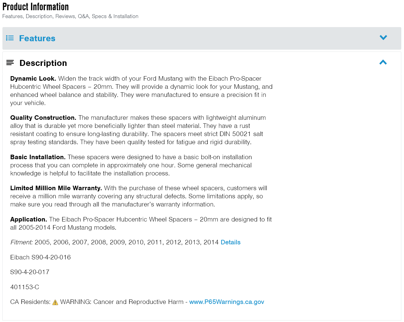 구입 제품명 : Eibach 20mm Pro-Spacer Hubcentric Wheel Spacers (05-14 All)